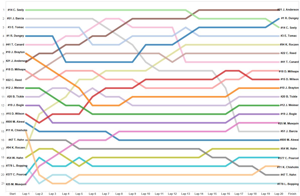 Dungey, or Anderson. This may have largely been because he had a crash on Lap 13 (perhaps getting tangled up with Lawson Bopping?), dropping him from