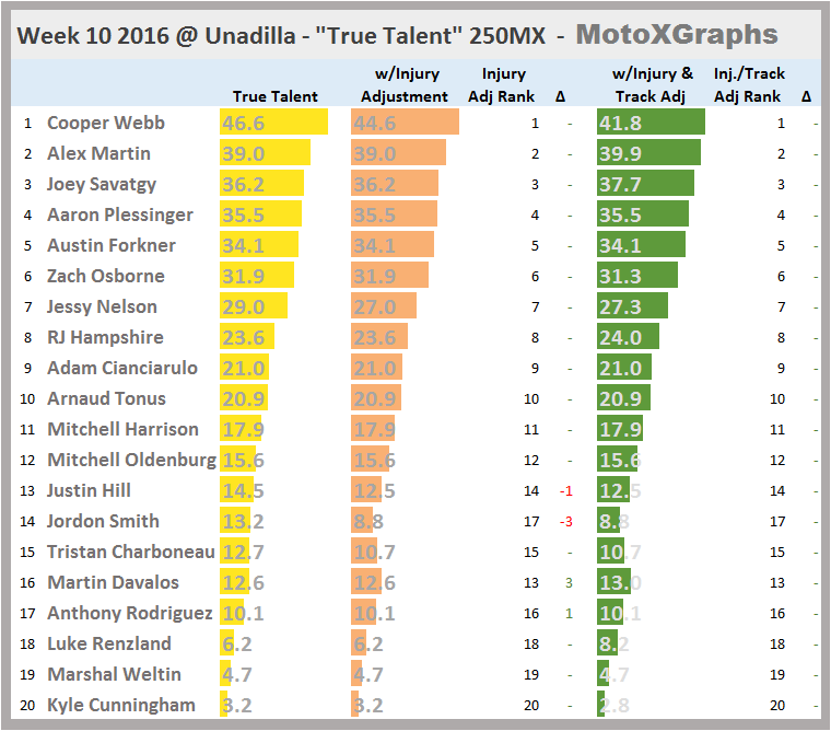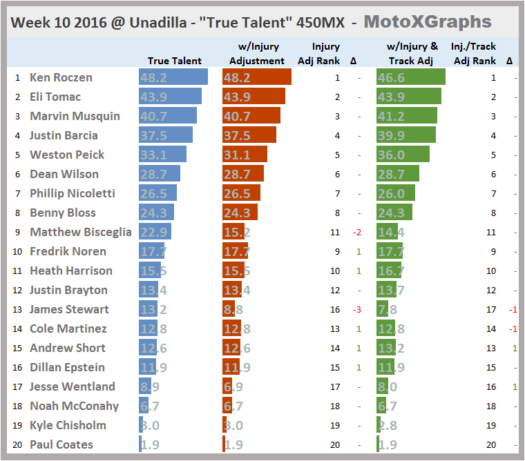 Who's got the talent and primed to win in Week 10 at Unadilla? The "This-Week" rankings look at the rider's perceived ability (aka "true talent") as well as injuries and the rider's history at the upcoming track.