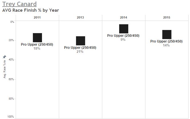 And while there was a time when Canard looked like he might be able to run with Dungey, Villopoto, and Stewart, it seems like injuries ruined a big portion of that opportunity. Even in the beginning of the 2016 SX season he’s missed a couple weeks due to injury. He’s only 25, so perhaps a long period of being injury-free would allow him to make a run at Dungey and Roczen (or whomever else) in the upcoming 2016 MX season or perhaps 2017. But pretty soon he’s entering the age where we expect to see decline, as those over 26 usually are on the down side of their career. So if Trey Canard is never able to truly compete for the #1 spot in a Motocross or Supercross season again, I think we'll look back at what could have been -- which is someone who was primed to compete with the Dungey/Villopoto/Stewart-level riders, but like many others it appears that a serious injury prevented him from reaching his true peak.