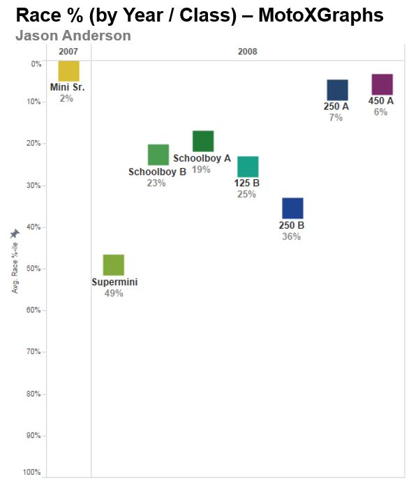 average a rider’s results for each year in terms of % and we can trace a
